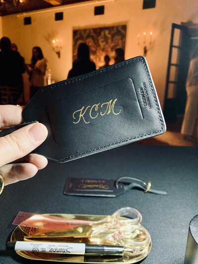 I can customize a wide variety of items which is why my services are so perfect for events since we can tailor it specifically to your vibe, aesthetic and overall vision. Engraving works best with glass, metal, ceramic, and stone (think glassware, barware, wine/liquor bottles, cosmetic items, candles, & more). Hot-foiling is perfect for faux leather items & other cloth items (luggage tags, passport covers, wallets, ribbon, etc). We will collaborate to find the perfect favor(s) for your day that your guests will be obsessed with!