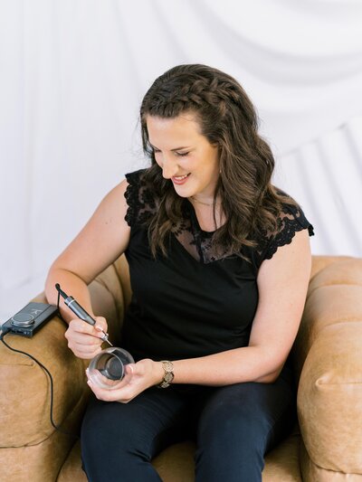 "Hiring Kendall to engrave glassware at our wedding was one of the absolute BEST decisions that we made! She was so sweet and kind to my husband and I, and truly helped to take our wedding reception to a whole new level. I had never heard of a live engraver before our planner suggested hiring Kendall, and when I saw her work I knew we had to have her as part of our day. Each of our guests (over 140 people) received a customized cocktail glass and we're still receiving praise for the incredible job she did in just 3 hours! She’s truly the best, if you’re on fence just hire her, you won’t regret it! Thank you from the bottom of our hearts, we’re going to cherish your work forever."